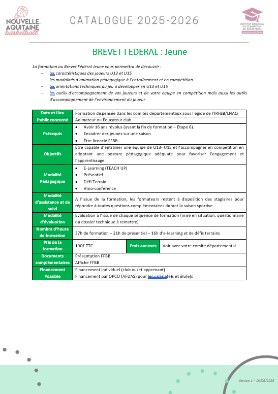 FORMATION BREVET FÉDÉRAL JEUNES : J'entraîne une catégorie entre U13 et U15